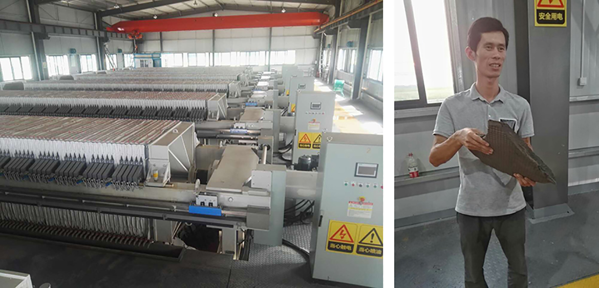 18:00成型的泥餅從濾板間脫落,26小時的分娩,痛并快樂著,那烏黑晶瑩的泥餅,就如一位新生產兒,宣告自己的驚艷全場,業主捧起了泥餅,笑得比屋外的烈日還要燦爛,“我太高興了,感覺像生了個兒子”。