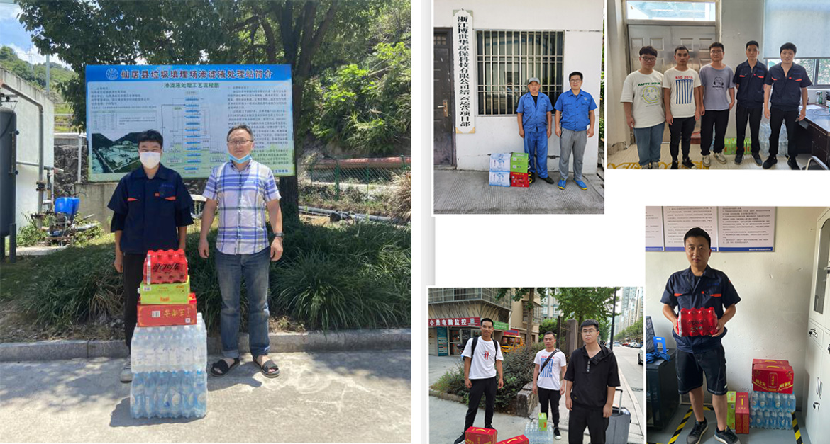 “清涼慰問”小組先后去到長興飛灰項目、仙居、新昌、縉云、景寧等運營項目,親自把防暑降溫用品送到一線員工手中。詳細詢問了一線人員工作時間和工作環境,感謝駐地員工的默默奉獻,同時叮囑在生活和工作中要合理安排工作時間,切勿在高溫時段室外作業,做好防暑降溫相關工作,確保各項工作順利開展。