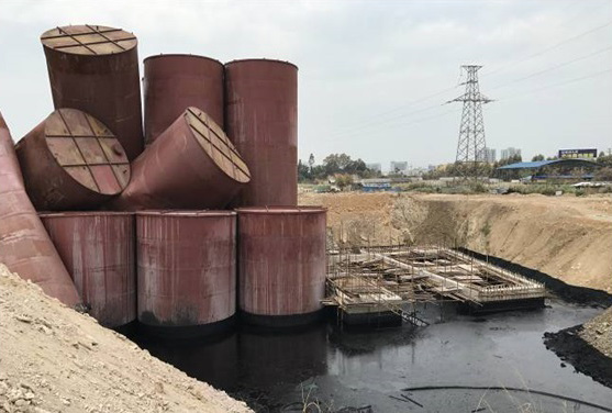 防雨防滲。在環(huán)保部華南環(huán)科所的指導(dǎo)下對硫酸儲(chǔ)罐區(qū)域進(jìn)行了素土覆蓋、加蓋防雨膜,并在周邊挖好雨水導(dǎo)流溝,防止雨水滲透進(jìn)入硫酸泄漏區(qū)域而影響地下水環(huán)境。