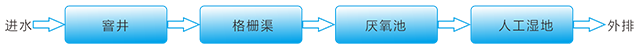 “厭氧+人工濕地”處理技術(shù)工藝流程如下: